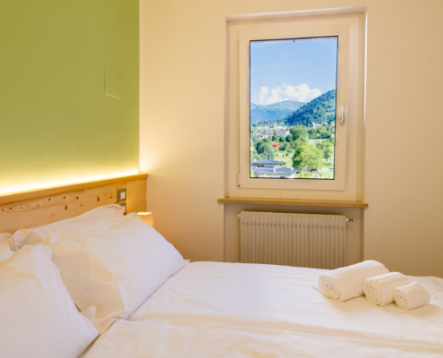 Eccola qui la nuova dimora dove vedrete il segnale della Salita Pericolosa dalla “pendenza incognita”. Le nostre camere, le aree conviviali ma anche la nostra “nuova” piazzetta del ciclista. Un luogo dove le serate trascorreranno al fresco di un maestoso ippocastano, testimone silenzioso della storia di questa cittadina, il cui cuore batte tra turismo alpino, terme e tradizioni.